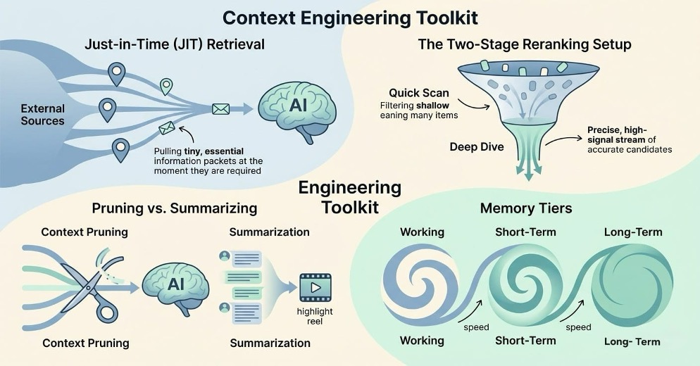 To stop the AI from getting overwhelmed, engineers use a few different strategies to make sure only the most important “high-signal” info reaches the model.